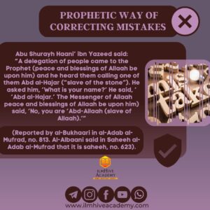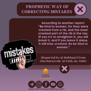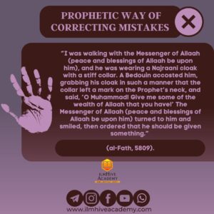 – Not making the one who makes the mistake feel like an enemy, because the aim is to win people over, not score points against them. Now we will move on to our discussion of the methods used by the Prophet (peace and blessings of Allaah be upon him) when dealing with the mistakes of people, as recorded in the saheeh ahadeeth narrated by the scholars. https://ilmhiveacademy.com/?p=25969&preview=true